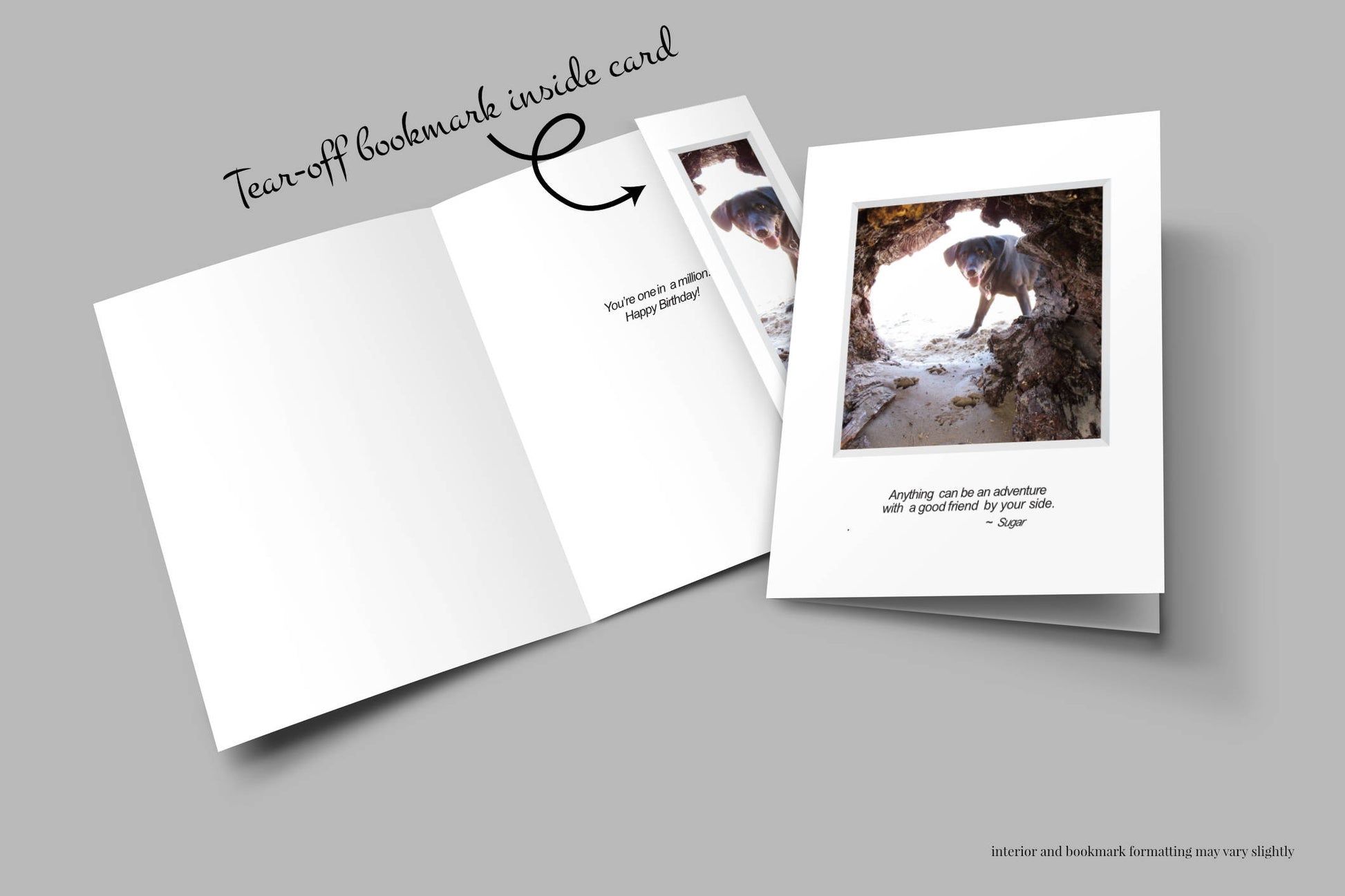 Card includes a matching tear-off bookmark inside.