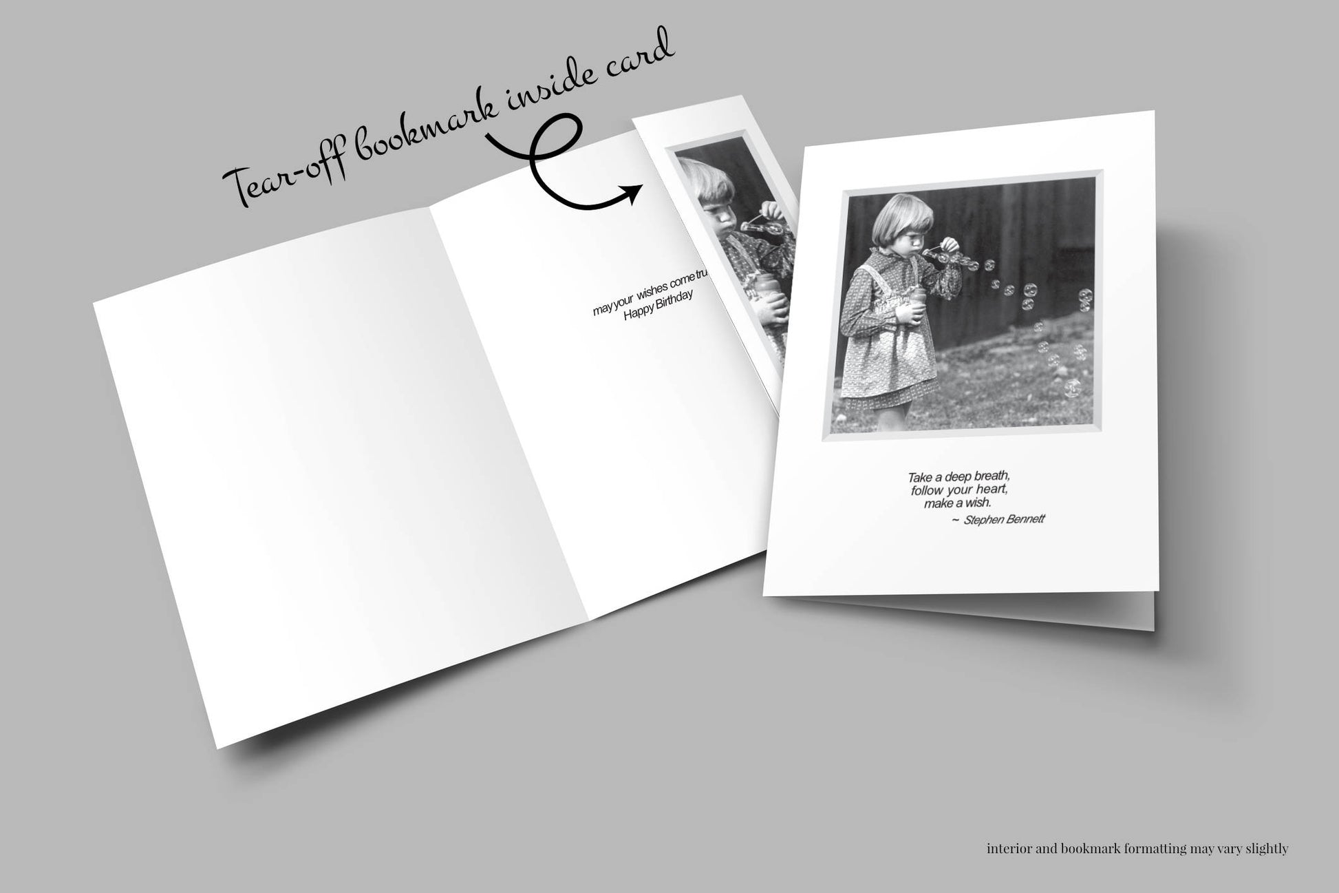 Card includes a matching tear-off bookmark inside.