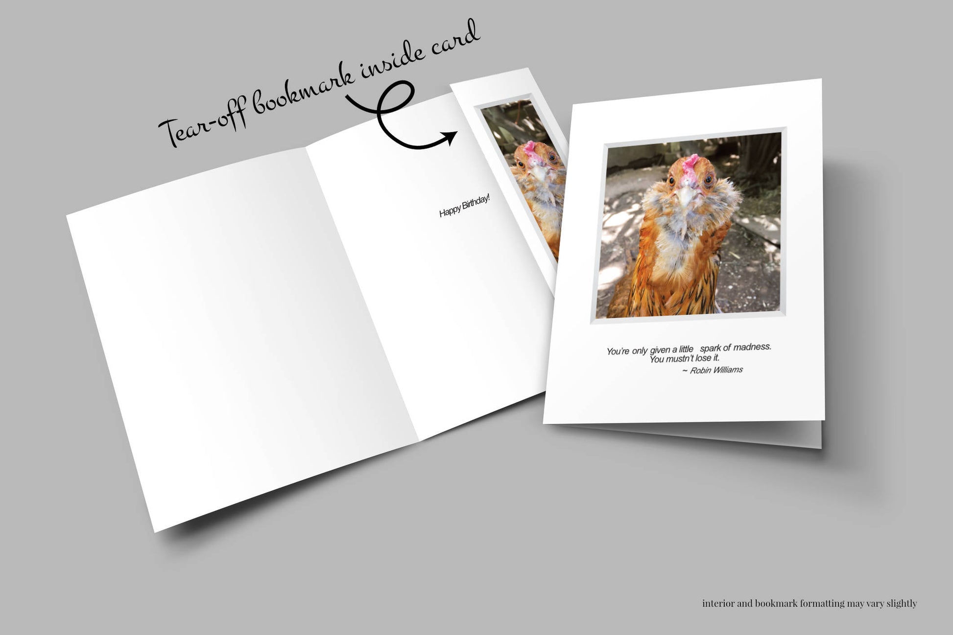 Card includes a matching tear-off bookmark inside.