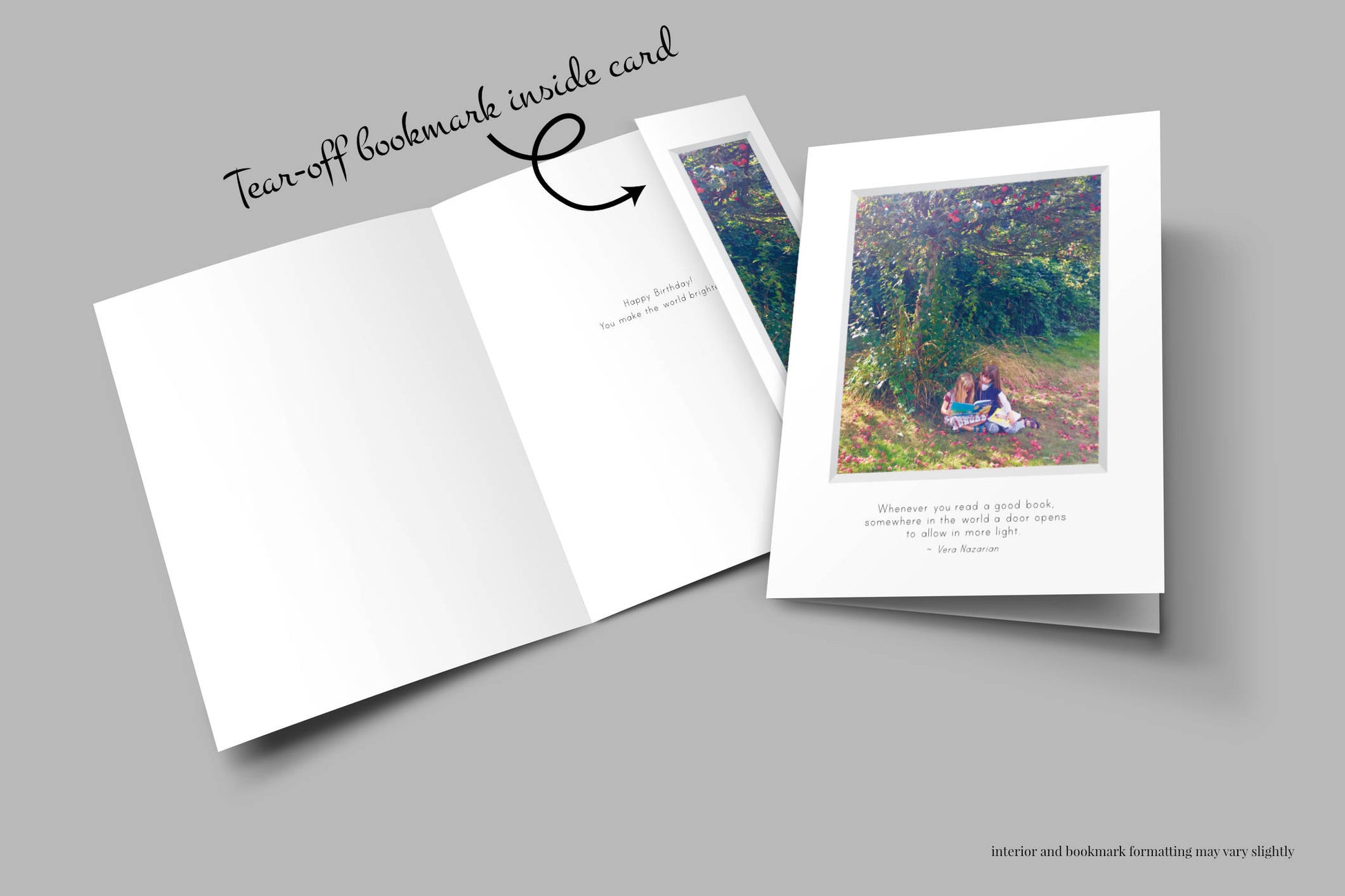 Card includes a matching tear-off bookmark inside.